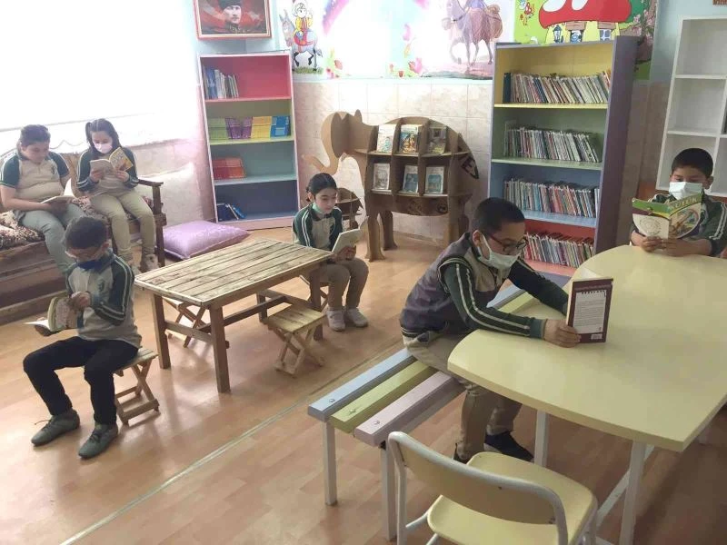 Sungurlu Mustafa Kemal İlkokulu öğrencileri, Çevre Dostu Okul projesi çerçevesinde atık malzemelerden ‘Sıfır Atık Kütüphanesi’ yaptılar.