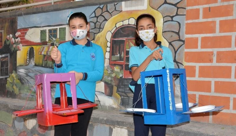 Öğrenciler belediyenin desteğiyle atık malzemelerden kuş yuvası yaptı