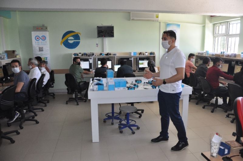 Frig Vadisindeki eserlerin atölyede kodlanacağını belirten Kılıçarslan “Robotik kodlama eğitimini 18 öğretmene verilirken eğitim 1 hafta sürecek ve yaklaşık olarak 50 saatlik bir eğitim olacak. Ahşap tasarım eğitimi ise 2 buçuk gün sürecek. Bölgemiz de önemli bir yer tutan Frig Vadisindeki eserlerimizi buradaki robot ve ahşap materyallerle birleştirmeyi düşünüyoruz. Aynı zamanda da 3 boyutlu tasarımlarını da yapmayı düşünüyoruz” diye konuştu.