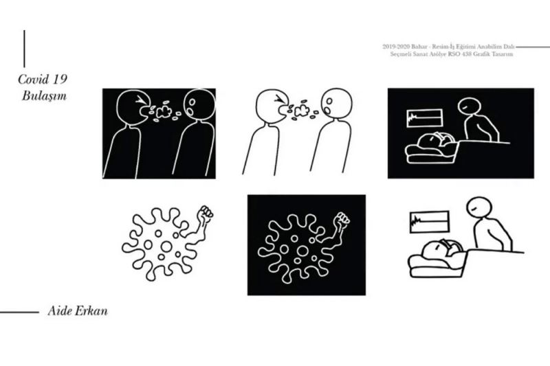 PAÜ Eğitim Fakültesi Güzel Sanatlar Eğitimi Bölümü Resim-İş Eğitimi Anabilim Dalı’nda öğrenim gören ve bu yıl mezun olacak 4. sınıf öğrencilerinden, Dr. Öğr. Üyesi Bekir İnce’nin refakatinde dönem içi çalışmalarından oluşan anı niteliğinde sunu videosu hazırlayarak paylaştı. PAÜ öğrencileri spor, gastronomi, iş güvenliği, trafik, amatör balıkçılık, kampçılık, oyun-eğlence, temizlik-hijyen, hava alanı, atölye ve müze, korona salgını, sanat akımları ve sanat eğitimi konularında 38 piktogram uygulaması yaptılar. Ayrıca, sunuda 5 logo tasarımı çalışması yer aldı. Ağırlıklı olarak piktogram çalışmalarından oluşan video hakkında Dr. Öğr. Üyesi Bekir İnce, “Uygulamalı sanat dersleri için oldukça zorlandığımız bir süreç oldu ancak öğrencilerimizin büyük çoğunluğu motivasyonlarını kaybetmedi ve çalışmalarımız kaldığı yerden devam ettiÖğrencilerimi bu süreçte fikir geliştirmeden ziyade teknik yetersizliklerin zorladığını söyleyebilirim. Çalışmalara kağıt üzerinde başladık, birçoğunun tasarımlarını dijitalleştirebilecek performansa sahip bilgisayarları yoktu örneğin. Buna rağmen cep telefonları ve tabletler için geliştirilmiş çeşitli tasarım aplikasyonlarından yararlanarak süreci tamamladığımızı söyleyebilirim. Dersi alan 16 öğrenci, süreçte genel konuları içeren serbest piktogramlar, sanat ve sanat eğitimi uygulamaları içeren piktogramlar ve corona salgınına ilişkin piktogramlar ürettiler” dedi.