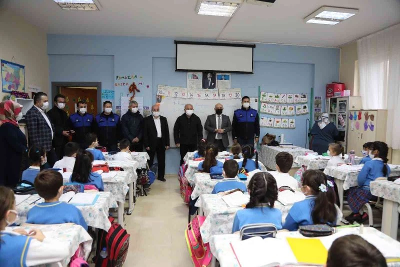 Darıca Belediye Başkanı Muzaffer Bıyık, Osmangazi Mahallesi’nde bulunan Ayfer Gazanfer İlkokulu 3-E sınıfına konuk oldu. Öğrencilerin daveti üzerine zabıta ekipleri ile birlikte sınıfa giden Başkan Muzaffer Bıyık’a mahalle muhtarı Kenan Demirbaş da eşlik etti. Minik öğrencilerin hem zabıtalık hem de belediyecilik hizmetleri ilgili sorularına yanıt veren Muzaffer Bıyık, mesleki tecrübelerini paylaşıp nasihatler vererek, öğrencilere tavsiyelerde bulundu.