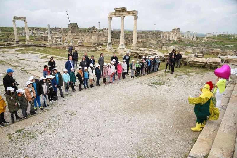Denizli’de Turizm Haftasında ilkokul öğrencileri, ‘Bilge Horoz’la Tarihe Yolculuk’ etkinliği çerçevesinde Laodikya Antik kentini gezdi.