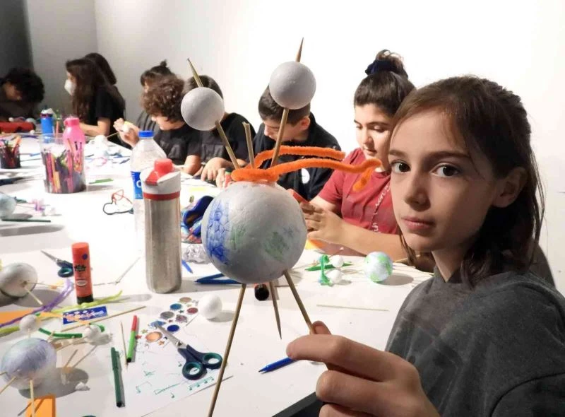 Antalya Bilim Merkezi’nin yoğun ilgi gören Astronomi Atölyesi’nde öğrenciler kutup yıldızının değişimini öğreniyor.