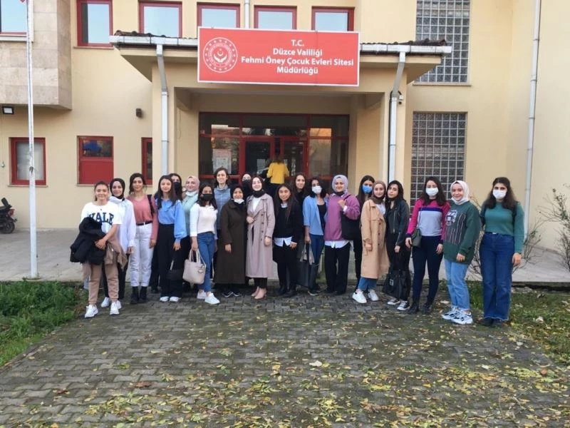 DÜZCE – Konuralp ve Mahpeyker Sultan Kız Öğrenci yurtları, Aile ve Sosyal Hizmetler İl Müdürlüğü bünyesinde bulunan Fehmi Öney Sevgi evlerini ziyaret etti.