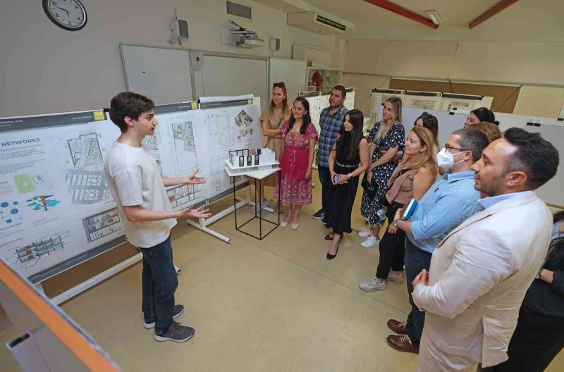 Çözüm odaklı projelerini jüriye sunan öğrenciler, büyük heyecan yaşadı. İzmir Büyükşehir Belediye Başkanı Tunç Soyer de jüriye çevrim içi olarak bağlandı. Öğrencilerden Nazmiye Çam’ın tasarladığı ortak çalışma alanı projesi ‘Tech-Community Center’ adlı çalışmasının sunumunu dinleyen Başkan Soyer, “Son derece şeffaf bir proje, pastel bir üslup hakim. Çözümler üretilmiş. Özellikle içerisinde bulunan amfi ve aynı anda farklı kurumlara ev sahipliği yapabilmesi çok çağdaş bir çözüm olmuş. Elinize sağlık. Böyle güzel projelere imza atan öğrencilerle konuşunca içim açıldı. Başarılarınızın devamını dilerim” dedi.
