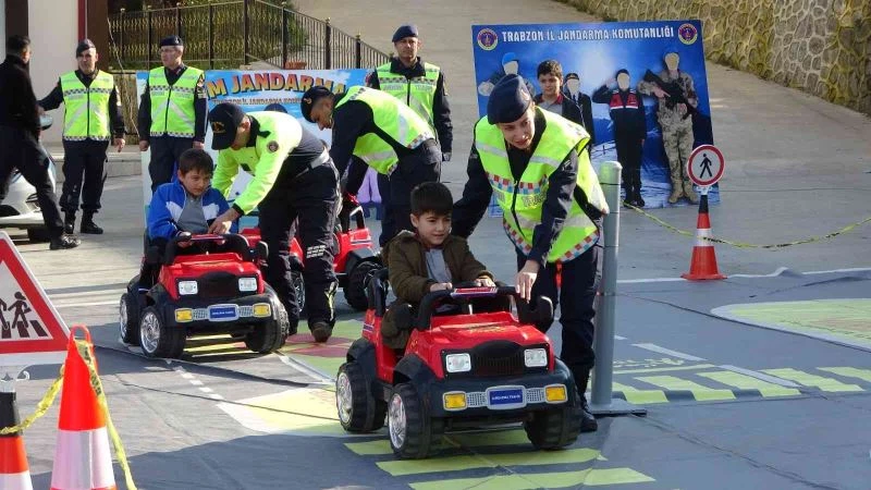 Trabzon’da Jandarma Mobil Trafik Eğitim tırında öğrencilere trafik eğitimi verildi. Eğitimin ardından öğrencilere trafik uyarı levhaları ve ışıklarının yer aldığı parkurda, akülü arabalarla trafik kuralları uygulamalı olarak anlatıldı.