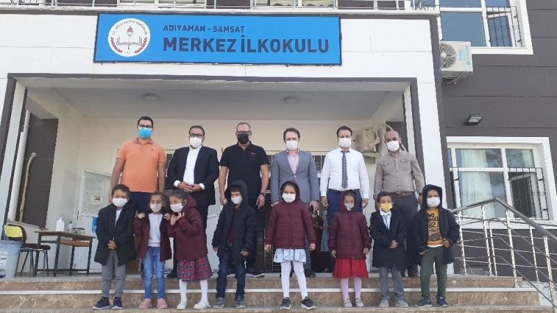Özel bir firma tarafından gönderilen bot ve montların dağıtımı için Samsat ilçesine gelen firma Genel Müdürü Tahir Bayraksoy ile birlikte Samsat Kaymakamı Aziz Oğuz Alemdaroğlu, Samsat Belediye Başkanı Halil Fırat ve ilçe Milli Eğitim Müdürü Abdullah Akın ilçe genelindeki bütün 1 ve 4. sınıf öğrencilerine hediyelerini verdi.