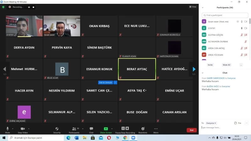 Siyaset Bilimi ve Kamu Yönetimi (SBKY) Bölüm Başkanı Prof. Dr. Özcan Sezer’in yürütücülüğündeki Kariyer Planlama dersi kapsamında Zoom üzerinden yapılan bilgilendirme ve tanıtımda, aynı zamanda üniversite SBKY mezunu olan Ergin konuşmasında sınavın genel ders dağılımı ve istatistikî bilgilerini öğrencilerle paylaşarak, planlı çalışmanın önemine vurgu yaptı, hangi mesleklerde hangi KPSS sınavlarının düzenlendiğine ilişkin detayları paylaştı.
