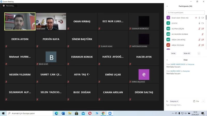 Siyaset Bilimi ve Kamu Yönetimi (SBKY) Bölüm Başkanı Prof. Dr. Özcan Sezer’in yürütücülüğündeki Kariyer Planlama dersi kapsamında Zoom üzerinden yapılan bilgilendirme ve tanıtımda, aynı zamanda üniversite SBKY mezunu olan Ergin konuşmasında sınavın genel ders dağılımı ve istatistikî bilgilerini öğrencilerle paylaşarak, planlı çalışmanın önemine vurgu yaptı, hangi mesleklerde hangi KPSS sınavlarının düzenlendiğine ilişkin detayları paylaştı.