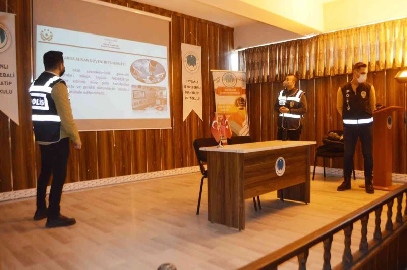 Polisler öğrencilere polisin görevleri, polis olmak için gerekli koşullar ve eğitim süreci, olumlu ve olumsuz yönleri, karşılaşılabilecek güçlükler, halkın huzurunu sağlamak için üzerimize düşen görevler ve öğrencilerin merak ettiği konular hakkında bilgilendirdi.