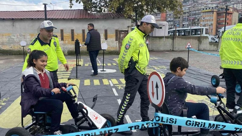 Zonguldak’ta Doktor Derviş Nihat Arkat İlkokuluna öğrencilerine mobil eğitim tırında trafik eğitimi verildi