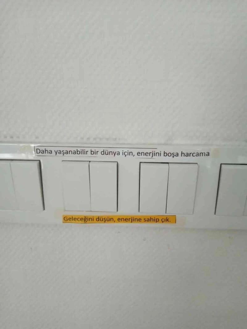 Yüksek Öğrenim Kredi ve Yurtlar Kurumu’na bağlı yurtlardaki elektrik düğmelerine, “Daha yaşanabilir bir dünya için, enerjini boşa harcama. Geleceğini düşün, enerjine sahip çık. Işığı kapat, geleceği aydınlat. Tasarrufun gücü ellerinizde. Gereksizse kapat” yazıları yapıştırıldı.