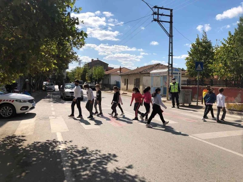 Edirne’nin Meriç ilçesine bağlı Küplü beldesinde Jandarma Komutanlığı Trafik Timlerinin sorumluluk sahasında bulunan ilkokul öğrencilerine yönelik düzenlenen trafik eğitimlerinde ‘Yaya geçidi kullanımı ve yaya önceliği’ konularında bilgilendirme yapıldı.