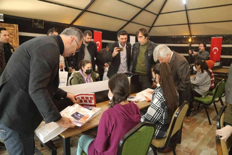 Eyyübiye Belediye Başkanı Mehmet Kuş, kitap otaklarında ders çalışan öğrencileri ziyaret edip, eğitim seti hediye etti.