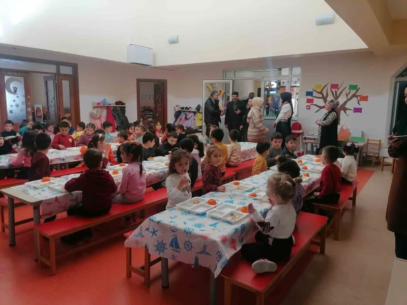 Uzundere İlçe Milli Eğitim Müdürü İbrahim Yılmaz Anaokulunda verilen yılın ilk yemeğine çocuklara eşlik etti, çocuklarla yemek sevincini paylaştı.