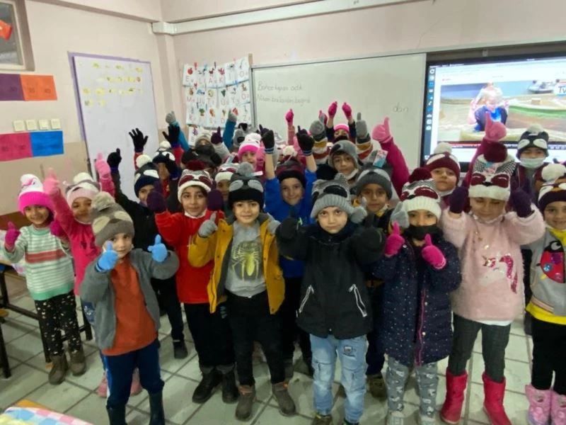 Adıyaman’ın Kahta Vali Özbilgin İlkokulu öğrencilerinin tamamına bere ve eldiven dağıtıldı.