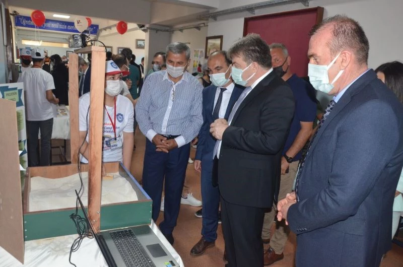 Açılışın ardından Kaymakam Erhan Karahan, Okul Müdürü Yalçın Yılmaz ve ilgililer, projeleri dolaşarak, öğrencilerden bilgiler aldı.
