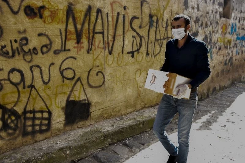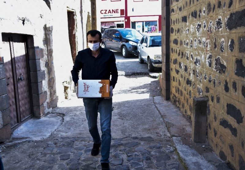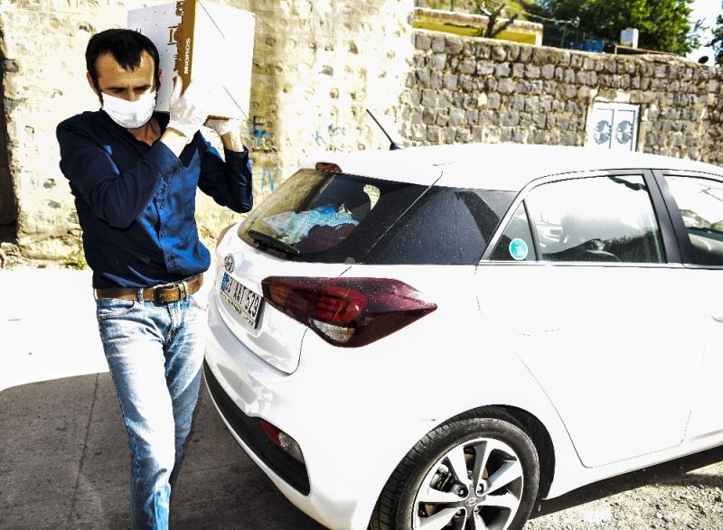 Dört kişilik ailenin, bir aylık gıda ihtiyacını karşılayan ürünlerin içinde bulunduğu koliler, ihtiyaç sahibi ailelerin kapılarına götürülerek bırakıldı.