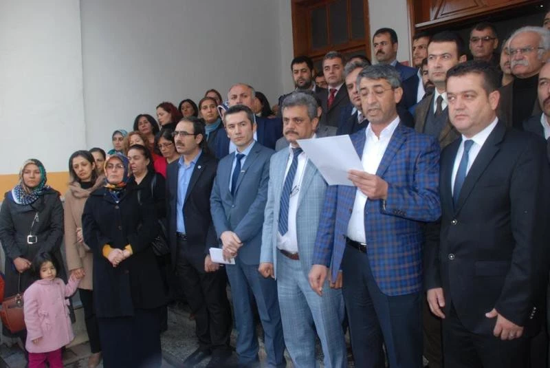 "Milletin çocuklarını eğitmekten başka amacı olmayan öğretmenlerimize yönelik saldırıları bir kez daha kamuoyuna taşımak için bu gün buradayız.