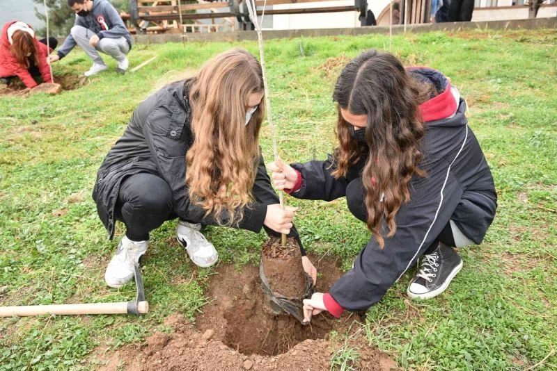 Merkezefendi Filiz Abalıoğlu Anadolu Lisesi bahçesine oluşturulan alanda yaklaşık 200 çeşitli ağaç fidanı toprakla buluştu.