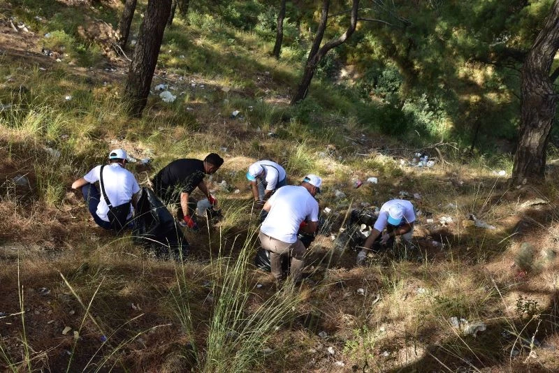Öğretmenler orman yangınına sebep olabilecek atıkları topladı