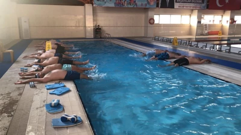 DÜZCE (İHA) – Gençlik ve Spor Bakanlığı tarafından başlatılan Yüzme Bilmeyen Kalmasın Projesi kapsamında Düzce’de öğretmenlere yüzme dersi veriliyor.