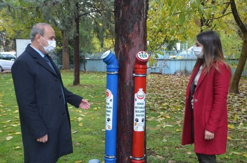 Gaziantep’in Oğuzeli ilçesinde Kaymakamlık ve Belediye iş birliği ile sokak hayvanları için belirlenen uygun yerlere atıl su borularından yapılan yemlik ve suluk yerleştirildi.
