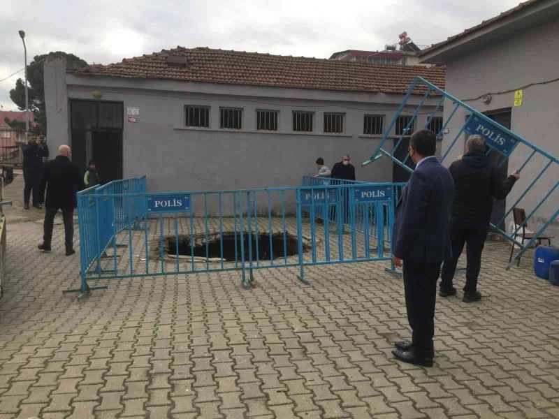 Manisa’nın Alaşehir ilçesinde bir ilkokulun bahçesinde, 4 metre genişliğinde 2 metre derinliğinde çukur oluştu. Sabah öğretmen ve öğrencilerin gelmesiyle fark edilen çukurun etrafı çocukların güvenliği için çevrildi. Alaşehir Kaymakamı Abdullah Uçgun, okula gelerek çalışmaları takip etti.
