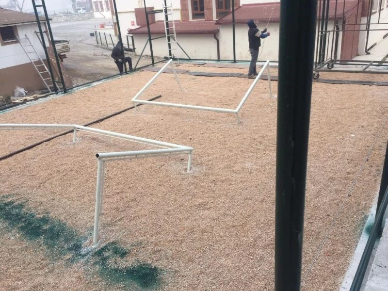 Okul bahçesine yeni halı saha yapımı için çalışmalar başlatıldı