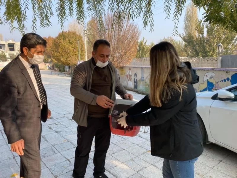 Iğdır’da okul müdürü tarafından bulunan Güvercin koruma altına alındı.