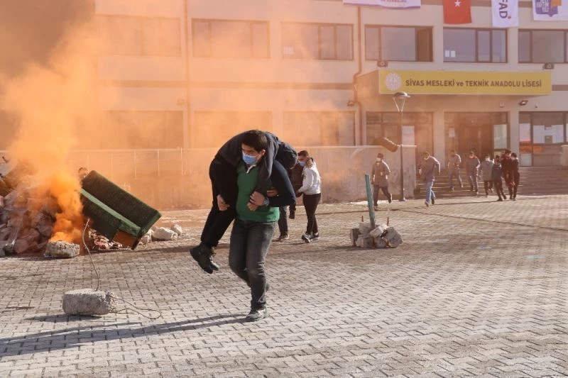 Sivas’ta Deprem Haftası nedeniyle okulda düzenlenen Deprem ve Acil Durumlar Tahliye Tatbikatı gerçeğini aratmadı. 238 personelin katıldığı tatbikat nefesleri kesti.