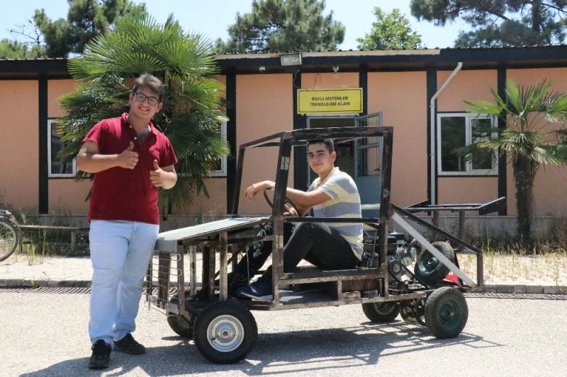 Sakarya’nın Adapazarı ilçesinde atıl vaziyette buldukları malzemeler ve araç gereçlerden benzinli araba yapan iki lise öğrencisi büyük takdir topladı.