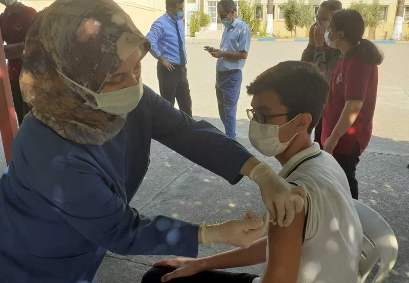 Osmaniye’nin Düziçi ilçesinde velilerin onayı ile öğrenciler, mobil sağlık ekipleri tarafından okullarda aşı olmaya başladılar. Okul bahçesinde kurulan mobil sağlık ekiplerince aşıları yapılan öğrenciler 15 dakika gözetim altında tutulduktan sonra tekrardan derslerine katılıyor.