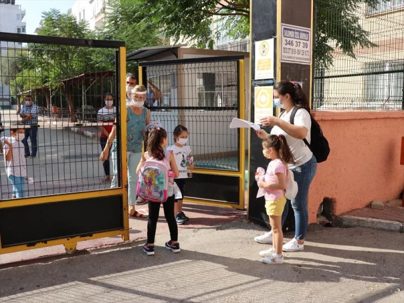 Antalya'da okul öncesi eğitim kurumlarında ve ilkokul 1'inci sınıflarda eğitim görecek öğrencileri, öğretmenler ve görevliler karşıladı. Okul girişine yerleştirilen ünitede ellerini dezenfekte eden çocuklar, daha sonra sınıflara geçti.