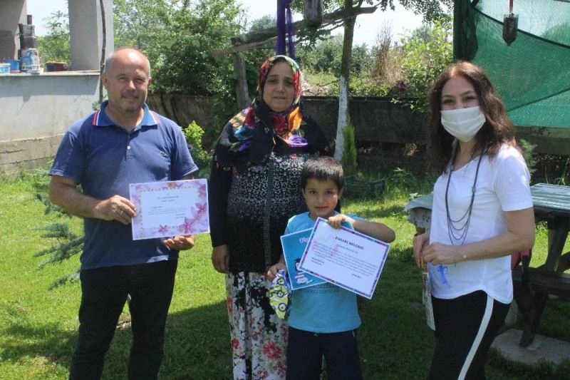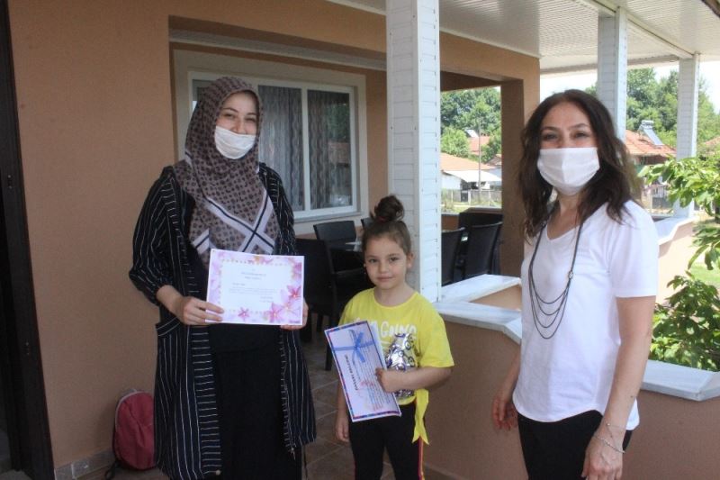 Okuma bayramında öğrencilerini yalnız bırakmadı, belgelerini evlerinde verdi
