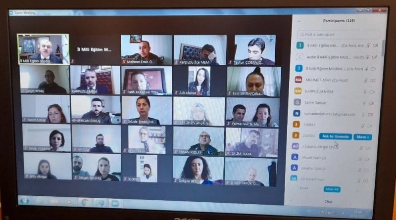Çevrim içi olarak gerçekleştirilen görüşmede konuşan Aydın İl Milli Eğitim Müdürü Seyfullah Okumuş, okullarda yapılan karne törenlerine her dönem katıldığını fakat bu dönem uzaktan eğitim sebebiyle karne töreni gerçekleştirilemediğini ifade ederek bundan dolayı en azından uzaktan da olsa bir ilçemizin öğretmenleriyle bir araya gelmek istediğini ve görüşmek için Karpuzlu ilçesini seçtiklerini belirtti.