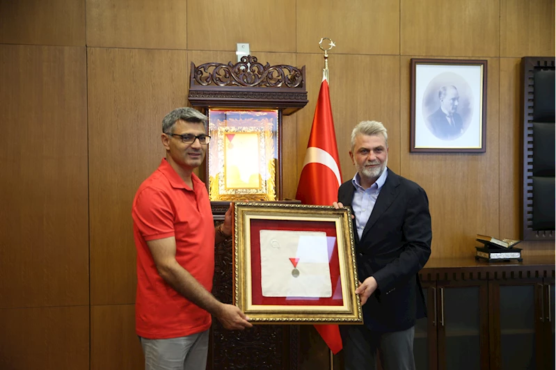 Görgel, Dikeç'e, Kahramanmaraş halkının Kurtuluş Savaşı'ndaki mücadelesinin ardından kente verilen "İstiklal Madalyası"nı temsilen sim sırma işleme tekniğiyle yapılan madalya detaylı bir tablo hediye etti.