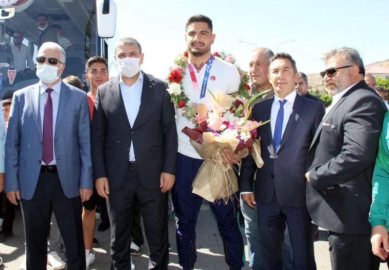 Tokyo Olimpiyat Oyunları erkekler serbest stil 125 kiloda 3. olan Sivaslı milli güreşçi Taha Akgül, memleketinde davul zurna eşliğinde karşılandı.