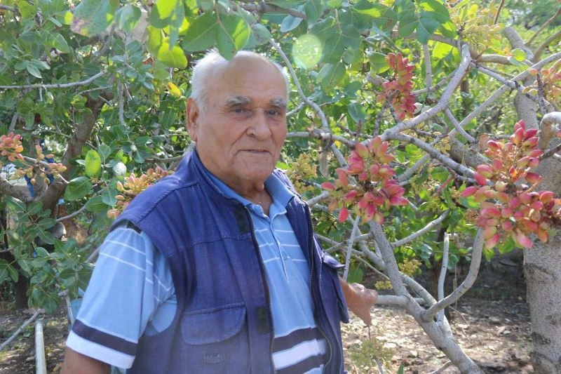 Komşusunun yemesi için verdiği kavrulmamış Antep fıstıklarını toprağa diken Üzeyir Güven, filizlendiğinde şaşırdığını dile getirdi. İlk senelerde Antep fıstığı ağacından verim alamadığını ve aşılama sayesinde fıstıkların çıktığını anlatan Güven, “Ben daha önce burada beyaz zambak yetiştiriyordum. Beyaz zambakları ekerken Şanlıurfa’dan komşumuz emekli Mehmet bey gelirken bana bir tas kavrulmamış taze Antep fıstığı getirmiş. Ben de çatlak olanları yedim. Çatlamamış olanları toprağa diktim. Tesadüf olarak çıktı ve Antep fıstığı oldu. Ondan sonra 5 sene geçti ve baktım Antep fıstığı fazla vermiyor. Şanlıurfa’dan bir öğretmen düğüne gelmişti buraya. Bana dedi ki “bunları aşı yapmadan olmaz”. Babasına telefon etti ve Şanlıurfa’dan çelik getirdi. Getirdiği çelikleri 3 sene önce aşı yaptık. Öğretmenin babası bana “3 sene sonra fıstık verir” dedi. Ama benimkiler daha ilk senesinde çıkmaya başladı. Bu sene 3’üncü senesi. Antep fıstığı bir sene çok çıkıyormuş diğer sene daha az. Bu senede az çıkan dönemdeymiş ama ona rağmen yine de Antep fıstığı var” diye konuştu.