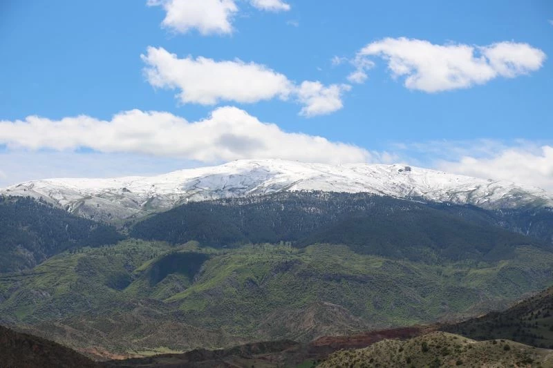 Erzurum’un Oltu ilçesinde Kır Dağ’a Mayıs ayında kar yağması Oltululara sürpriz yaşattı.