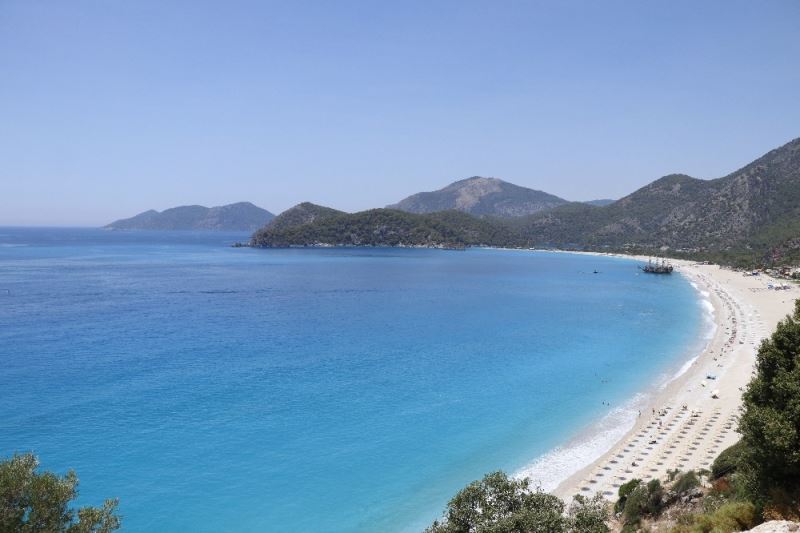 Muğla’nın Fethiye ilçesinde yer alan dünyaca ünlü Ölüdeniz Plajı’nda vatandaşlar sosyal mesafe kurallarına uyup denize girdi.