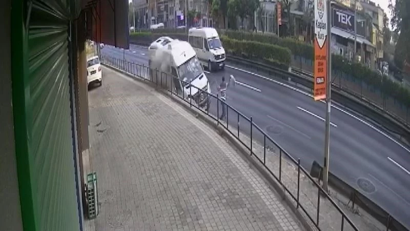 Kaza, sabah 09.00 sıralarında Bursa-İzmir yolu Bursa istikameti Sırameşeler Metro İstasyonu önünde meydana geldi. Edinilen bilgiye göre, boş servis minibüsü sağ şeritte ilerlerken sürücüsünün bir anlık dalgınlığı sonucu kaldırıma çıktı. O sırada kaldırımda servis bekleyen bir işçi üzerine doğru gelen minibüsü fark ederek son anda kendini yola atarak kurtulmayı başardı. Kaldırıma çıkan minibüs ise önce aydınlatma direğine daha sonrasında yaya üst geçidinin ayağına çarparak durabildi. Kaza yapan minibüsün sürücü aracından inerek yerde yatan adamın yanına geldi. O anlar ise bir iş yerinin güvenlik kamerasına anbean yansıdı.