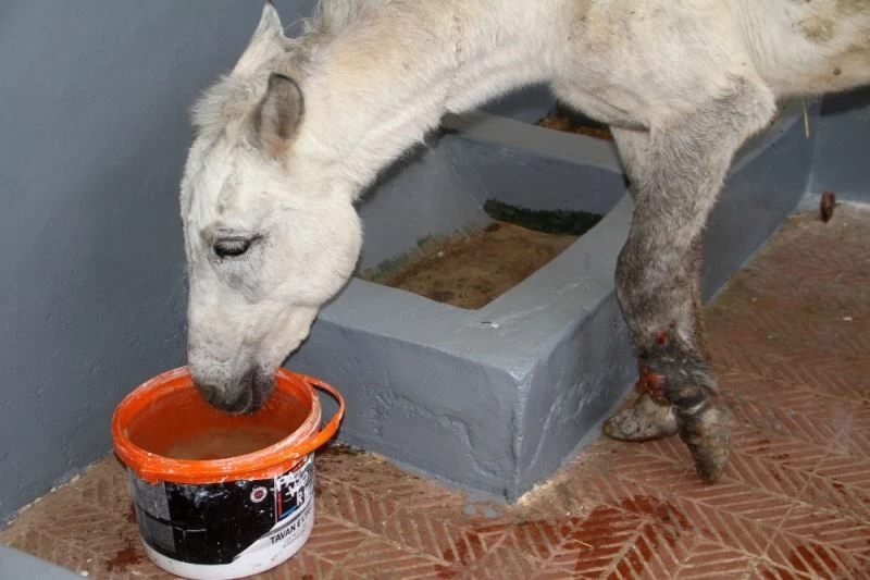 Elazığ’da ayağından yaralandığı için ölüme terk edilen katırın kurtarılmasının ardından kaldırıldığı hayvan hastanesinde yapılan kontrollerde uzun süre aç kaldığı belirlenirken, hayvanın toparlanmasının ardından operasyona alınacağı belirtildi.