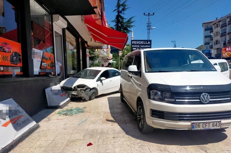 Başkent’te karşısına çıkan araca çarpmamak için ani fren yapan sürücü otomobilinin hakimiyetini kaybetti. Savrulmaya başlayan araç önce demir korkuluklara, ardından da cadde üzerinde yer alan araç kiralama firmasının önündeki başka bir araca çarparak durabildi.