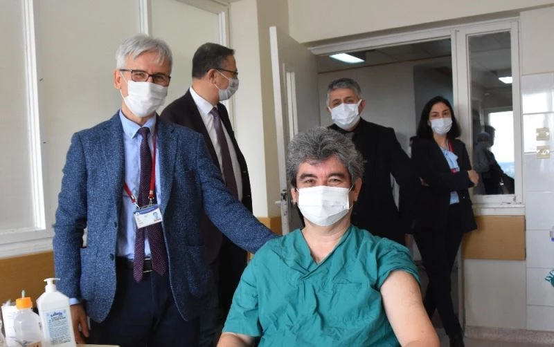 Samsun Ondokuz Mayıs Üniversitesi (OMÜ) Tıp Fakültesi Hastanesi’nde sağlık çalışanlarına Kovid-19 aşısı yapılmaya başlandı.