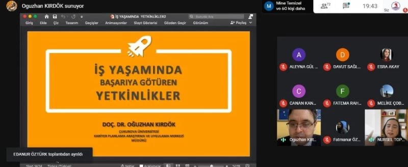 Öte yandan, OMÜ Kariyer Merkezi’nin düzenlediği seminerde “İş Yaşamında Başarıya Götüren Yetkinlikler” konuşuldu. Ondokuz Mayıs Üniversitesi (OMÜ) Kariyer Merkezi’nin, mezun ve öğrencilere yönelik düzenlediği "İş Yaşamında Başarıya Götüren Yetkinlikler" konulu kariyer semineri, Merkez Müdürü Doç. Dr. Nursel Topkaya’nın moderatörlüğünde internet üzerinden gerçekleşti. Çukurova Üniversitesi Kariyer Merkezi Müdürü Doç. Dr. Oğuzhan Kırdök’ün de katıldığı semineri, lisans ve lisans üstü eğitim gören öğrencilerin yanı sıra OMÜ mezunları da ilgiyle takip etti. Seminerde başarı, yetkinlikler, iş yaşamı, 21. yüzyıl yetkinlikleri, duygusal zekâ ve öz-yönetim becerileri gibi konular ele alınarak bu becerilerin iş yaşamında önemi ve gereği üzerinde duruldu. Öğrenciler ve mezunlardan gelen soruların yanıtlanmasının ardından etkinlik sona erdi.
