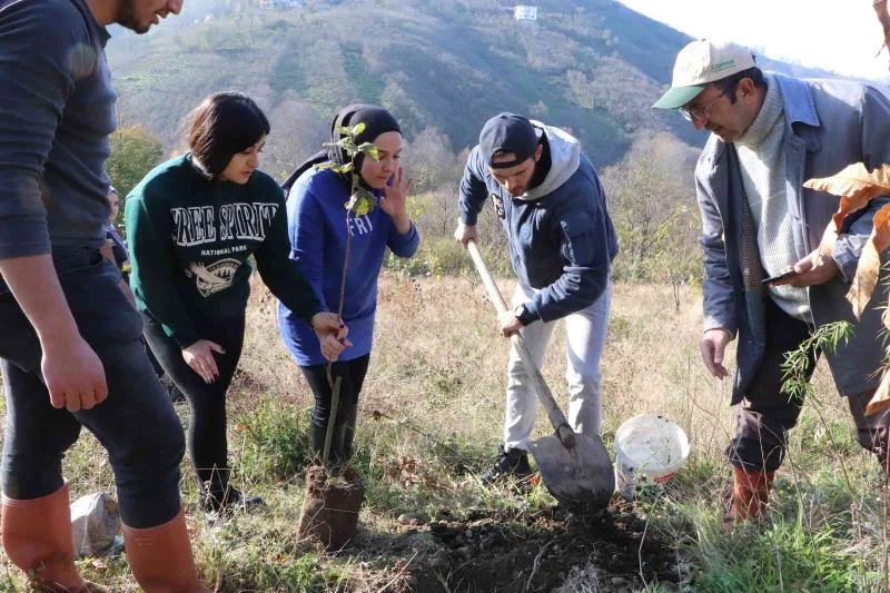 OMÜ’lü öğrenciler fındık fidanlarını toprakla buluşturdu