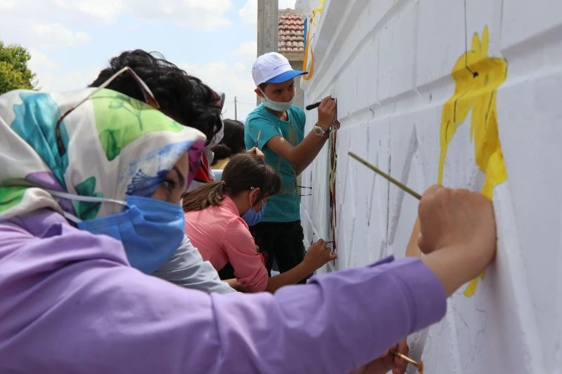 Aksaray’ın Eskil ilçesine bağlı Çukuryurt Köyü İlk ve Ortaokulu yönetimi, pandemi nedeniyle okuldan uzak kalan öğrencilerin yeniden okula ısınmalarını sağlamak için farklı ve renkli bir çalışmaya imza attı. Okulun yıkık olan bahçe duvarı Aksaray Valiliği, İl Milli Eğitim Müdürlüğü ve vatandaşların desteği ile yeniden yaptırılırken, beyaza boyanan duvara çizgi film kahramanlarını çizmek için öğrencilere davet gönderildi. Renkli davete kayıtsız kalmayan minik öğrencilerin hepsi okula gelerek eğlenceli eğitim için kolları sıvadı. Minik öğrenciler, öğretmenleri ile birlikte beyaza boyanan bahçe duvarının üzerine sevdikleri çizgi film kahramanlarının resmini çizdi. Ardından renklendirmeye geçen öğrenciler, çizilen çizgi film kahramanlarını zevklerine göre boyadı.