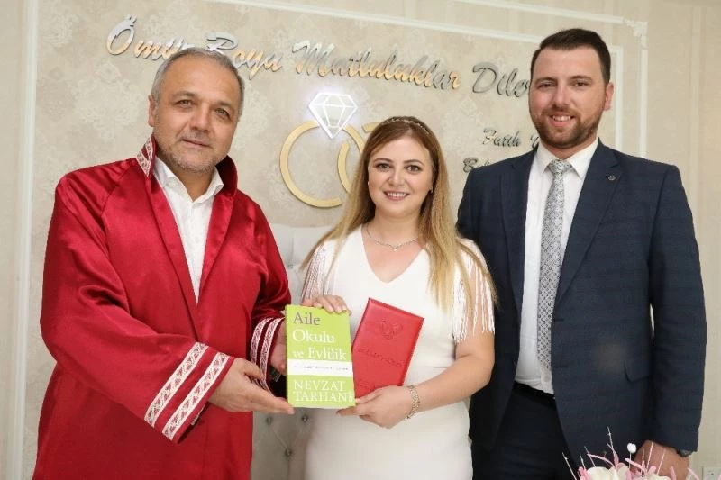 Amasya’nın Suluova İlçe Belediye Başkanı Fatih Üçok, evlenecek çiftlerin önce nikah akdini gerçekleştiriyor, ardından kitap hediye ediyor.