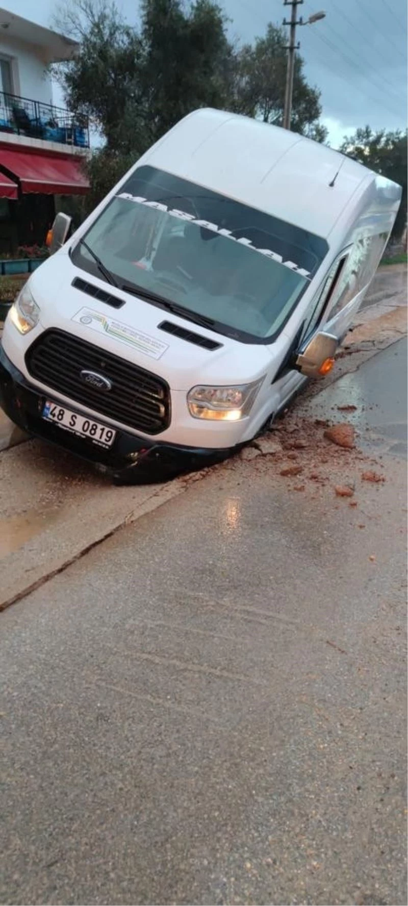 Geceden bu yana etkili olan sağanak yağış dolayısıyla altyapı için kazılıp kapatılan yer yumuşayınca öğrencileri almak için bölgeye giden okul servisi çamura battı. Sol ön kısmı çamurun içine giren sağ arka tekeri askıda kalan okul servisinde yaralanan olmazken kaza esnasında serviste öğrenci olmaması şans olarak değerlendirildi. Minibüs, yürütülen çalışmanın ardından kurtarıldı. Daha sonra yüklenici firma tarafından minibüsün düştüğü çukurun kapatılması için dolgu malzemesi getirildi. Kamyon da aynı çukura batarak mahsur kaldı. Kamyonu çıkarmak için bölgeye kepçe gönderildi. Kamyonu kurtaran kepçe de bir süre çukurda mahsur kaldı. Kepçe daha sonra kendi imkanları ile çıkmayı başarırken, 3 aracın battığı çukur, kumla dolduruldu.
